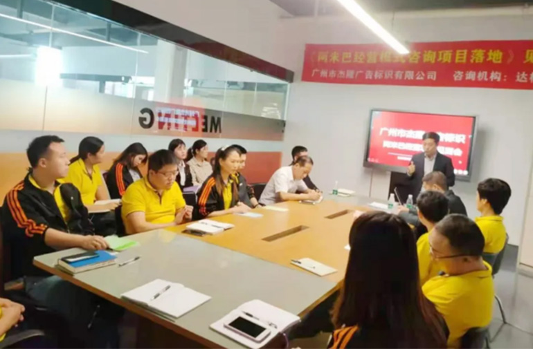 2020年11月12日,達(dá)標(biāo)集團旗下達(dá)標(biāo)咨詢與廣州市杰隆廣告標(biāo)識公司達(dá)成了新一輪的“阿米巴經(jīng)營模式”咨詢項目落地的合作,并在杰隆廣告公司會議室召開了達(dá)標(biāo)咨詢老師和全體員工的見面會。