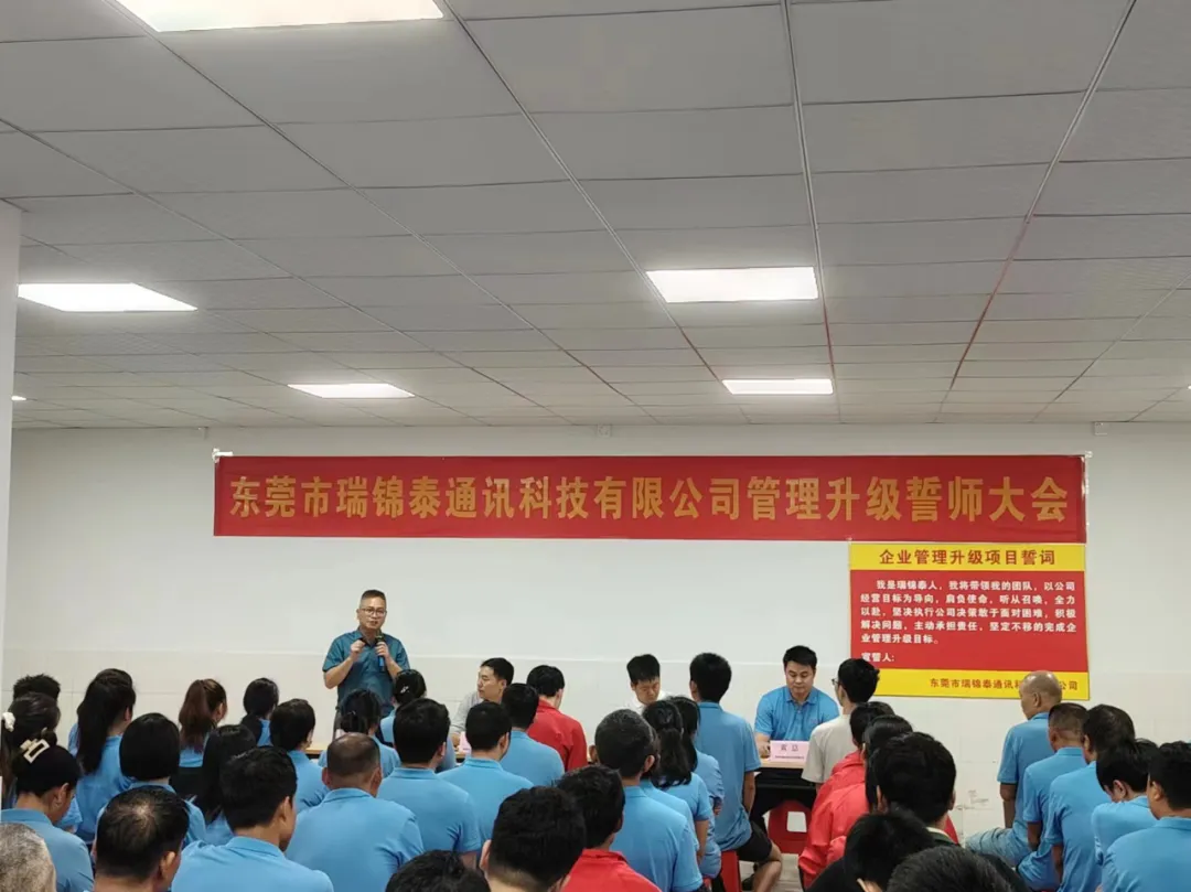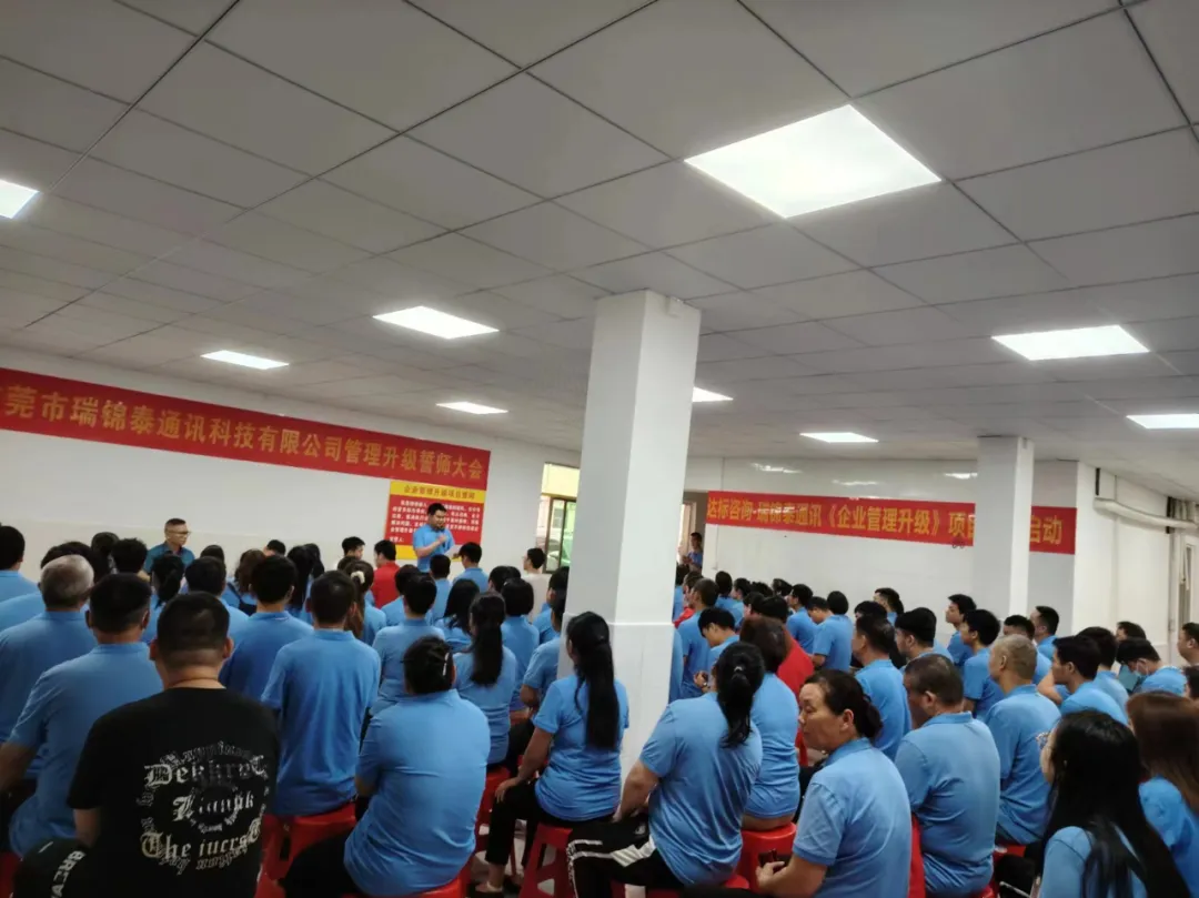 為建立公平、合理、科學的管理體系,全面提升公司效能。東莞市瑞錦泰通訊科技有限公司(以下簡稱“瑞錦泰”)和達標企業(yè)管理咨詢就《企業(yè)管理升級項目》合作事宜達成共識并簽署協議。雙方于2024年4月8日在瑞錦泰公司正式啟動《企業(yè)管理升級》項目。瑞錦泰的劉總、黃總攜核心管理團隊,與達標企業(yè)管理咨詢彭贊純老師及項目組趙老師共同出席了本次大會!