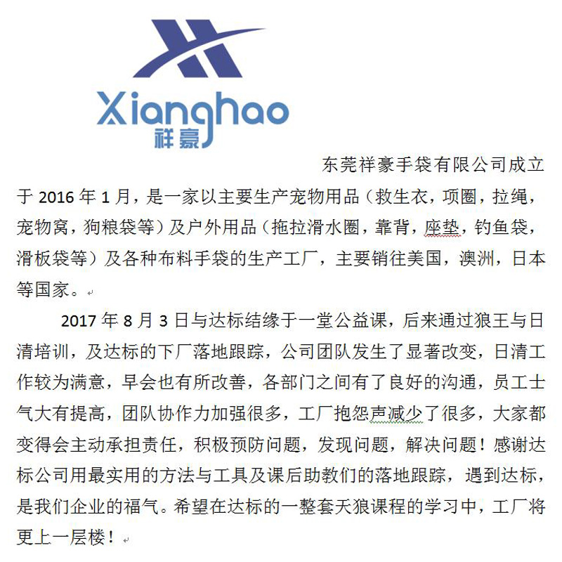 東莞祥豪手袋有限公司課程落地分享